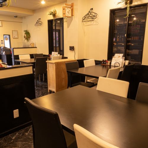 4名掛けのテーブル席を4席ご用意しています。テーブルの間隔もゆったりと取ってあるため、周囲を気にせずお食事やおしゃべりをお楽しみいただけます。また、テーブルを結合して大人数でのご利用も可能!ご家族での団らんやなど、幅広いシーンでご利用ください。シンプルながらも落ち着いた空間でごゆっくりお寛ぎください◎