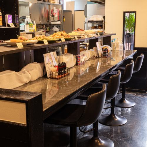 ディナータイムの主役は、日替りのおばんざいです!毎日変わるメニューには、どこか懐かしさを感じるような家庭的な料理が並びます♪疲れた一日の終わりに、ホッと心が安らぐ優しい味わいをお楽しみください。おばんざいのほかにも、揚げたて熱々の揚げ物や焼き物、一品物など充実のラインナップをご用意しております◎